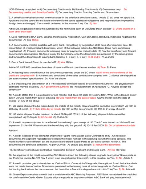 Download Documentary Credit Exam Questions Answer Doc